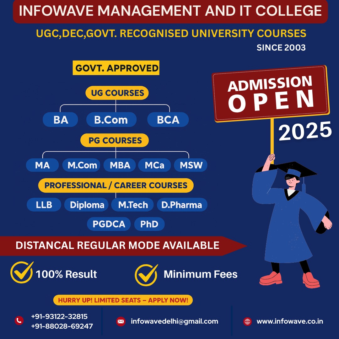 Our college is dedicated to providing career-oriented and industry-focused education to students. We offer a wide range of undergraduate and postgraduate courses including BBA, BCA, B.Com, MBA, and many more. To make education accessible for every learner, we provide both offline classroom learning as well as distance/online learning options. All our courses are offered under university or government-recognized programs, ensuring the credibility and value of your degree. With experienced faculty, personalized academic support, regular doubt-solving sessions, and complete mentorship, we focus on developing the right skills along with academic knowledge. We believe education is not just about earning a degreeāit is about building a successful future. At our institute, every student is guided with proper attention, flexible learning, and a supportive environment that helps them grow, learn, and achieve their career goals.